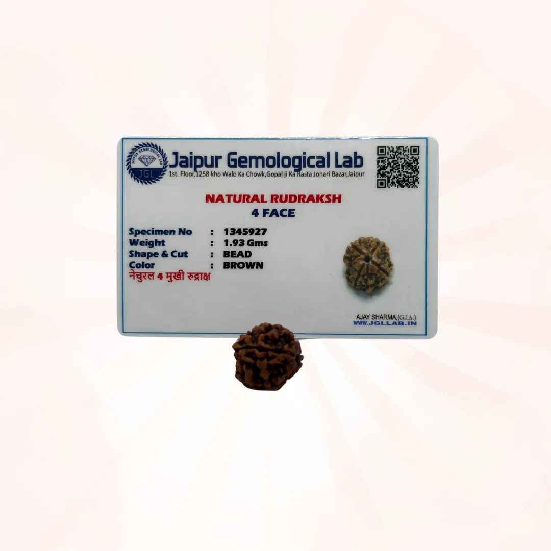 The 4 Mukhi Rudraksha is a divine gift of nature, blessed with the energy of Lord Brahma—the creator of knowledge and wisdom. This sacred bead is renowned for enhancing intellect (buddhi), knowledge (gyaan), memory (smaran shakti), and communication skills. If you are a student, speaker, writer, researcher, or spiritual seeker, this Rudraksha is your true companion on the path of success, clarity, and inner power.