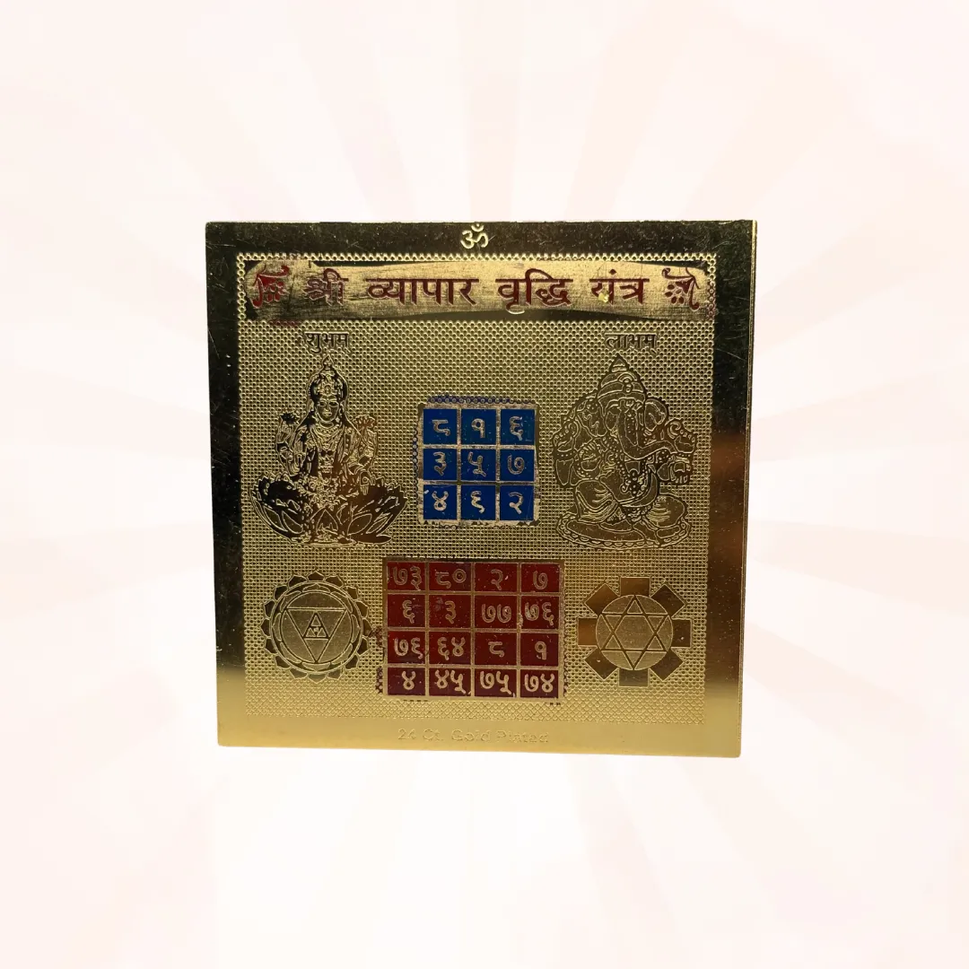 The Vyapaar Vriddhi Yantra is a highly potent spiritual yantra designed to remove barriers in business, attract new customers, and accelerate the growth of your brand or venture. It is ideal for entrepreneurs, shopkeepers, traders, and professionals seeking long-term success, expansion, and financial prosperity.